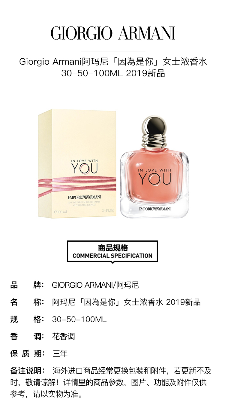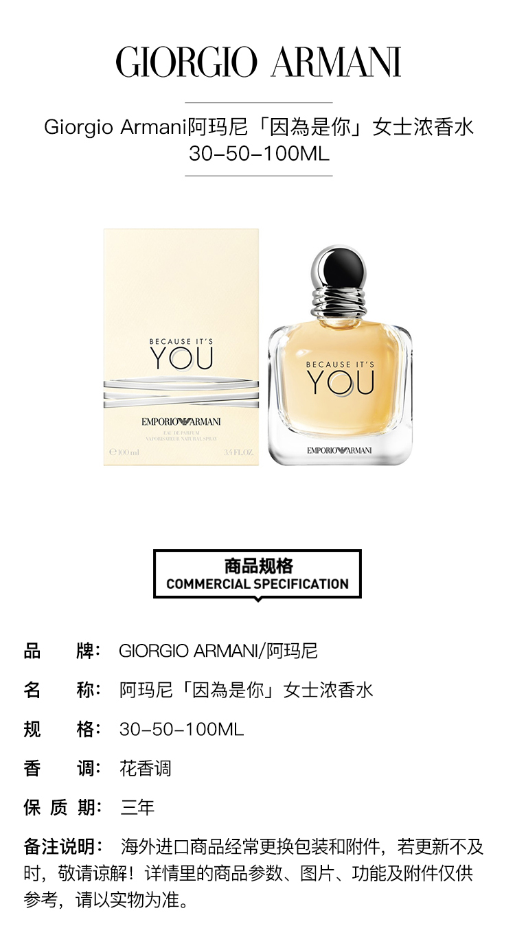 【欧洲仓】【法国直邮】Giorgio Armani阿玛尼「因為是你」女士浓香水EDP