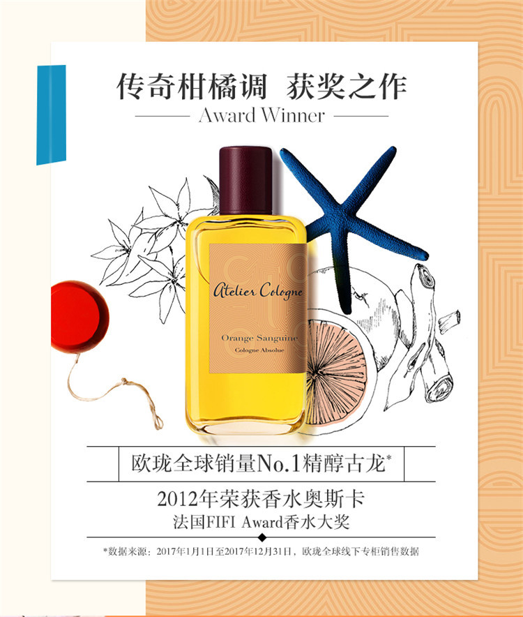 【欧洲仓】【法国直邮】Atelier Cologne欧珑赤霞橘光香水30ML