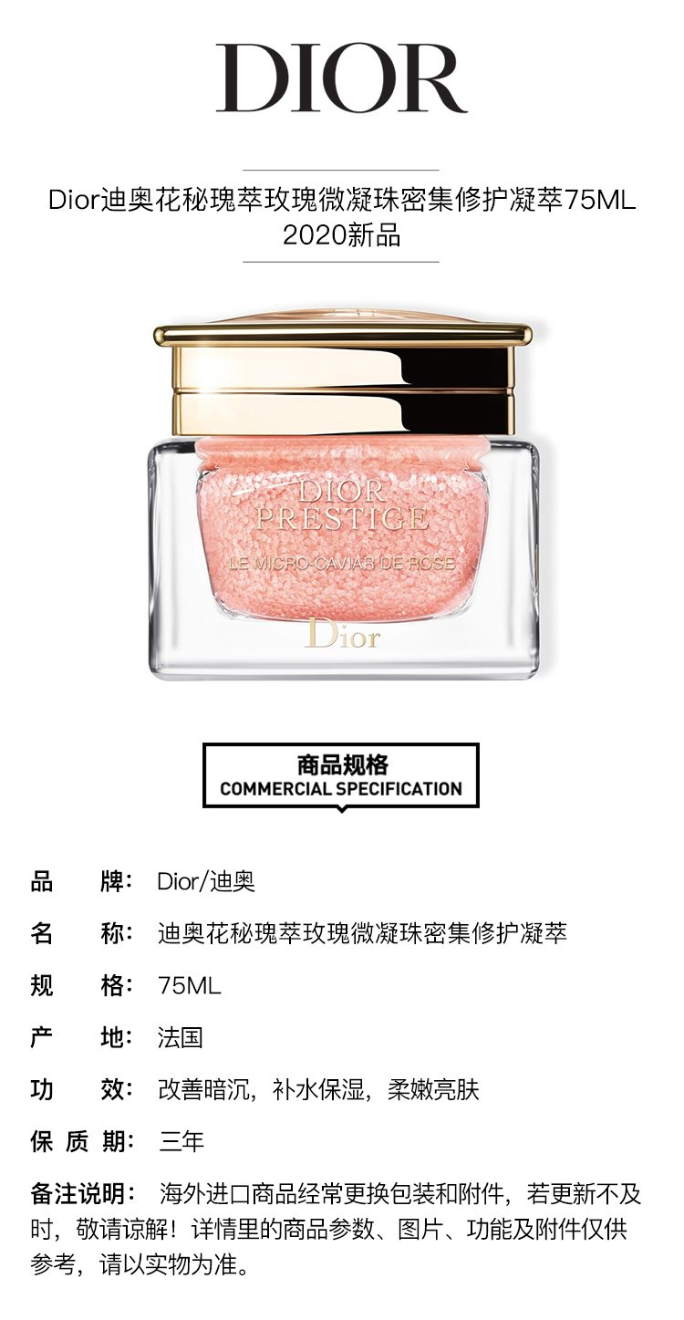 【欧洲仓】【法国直邮】Dior迪奥花秘瑰萃玫瑰微凝珠密集修护凝萃75ML 2020新品
