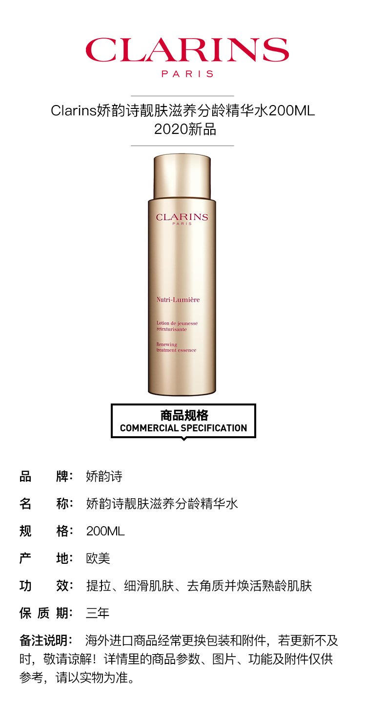 【欧洲仓】【法国直邮】Clarins娇韵诗靓肤滋养分龄精华水200ML 2020新品