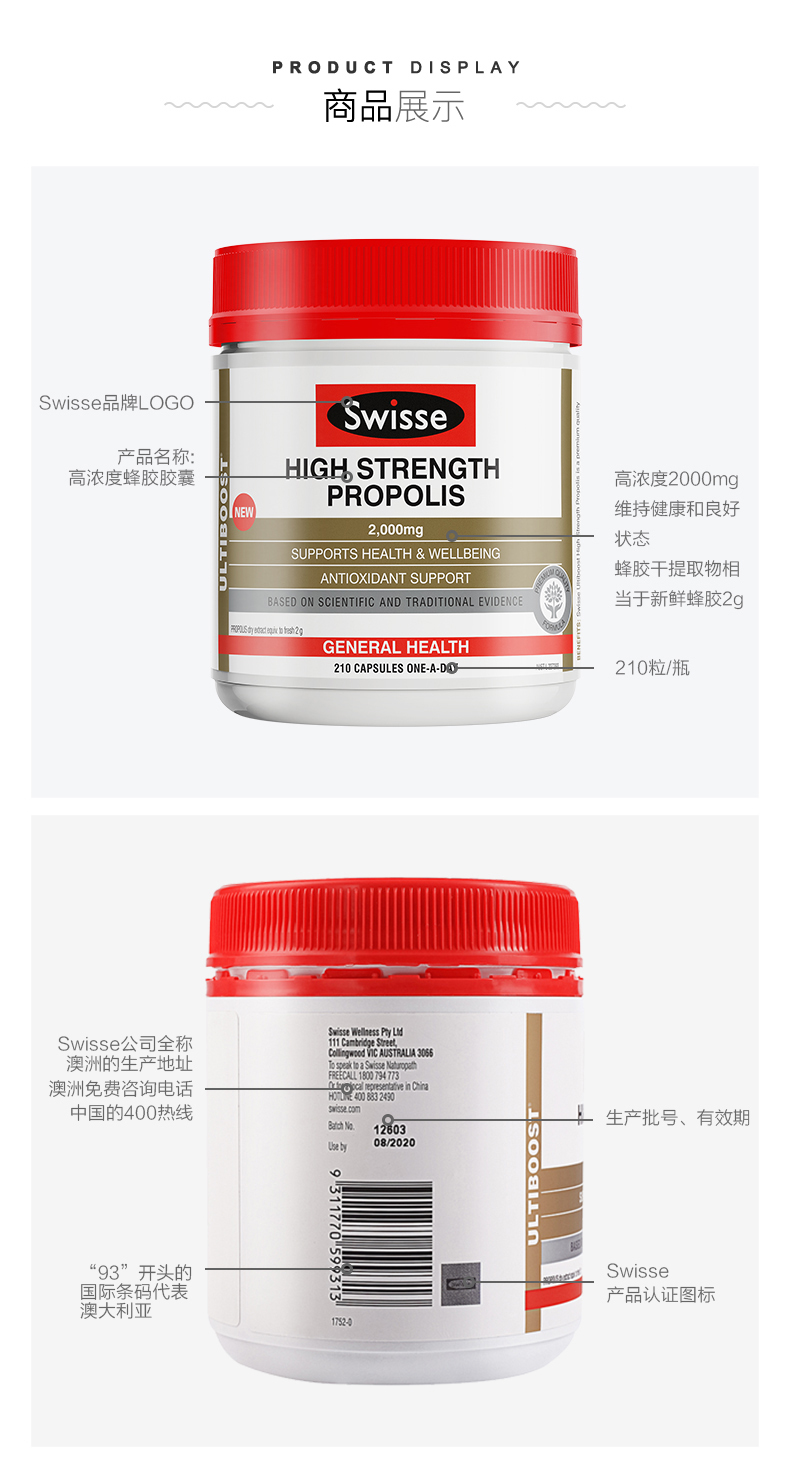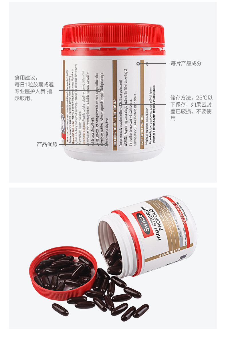 【澳洲仓】【三件及以上包邮 】Swisse Propolis蜂胶软胶囊210粒 高浓度黑蜂胶增强抵抗力2023年6月