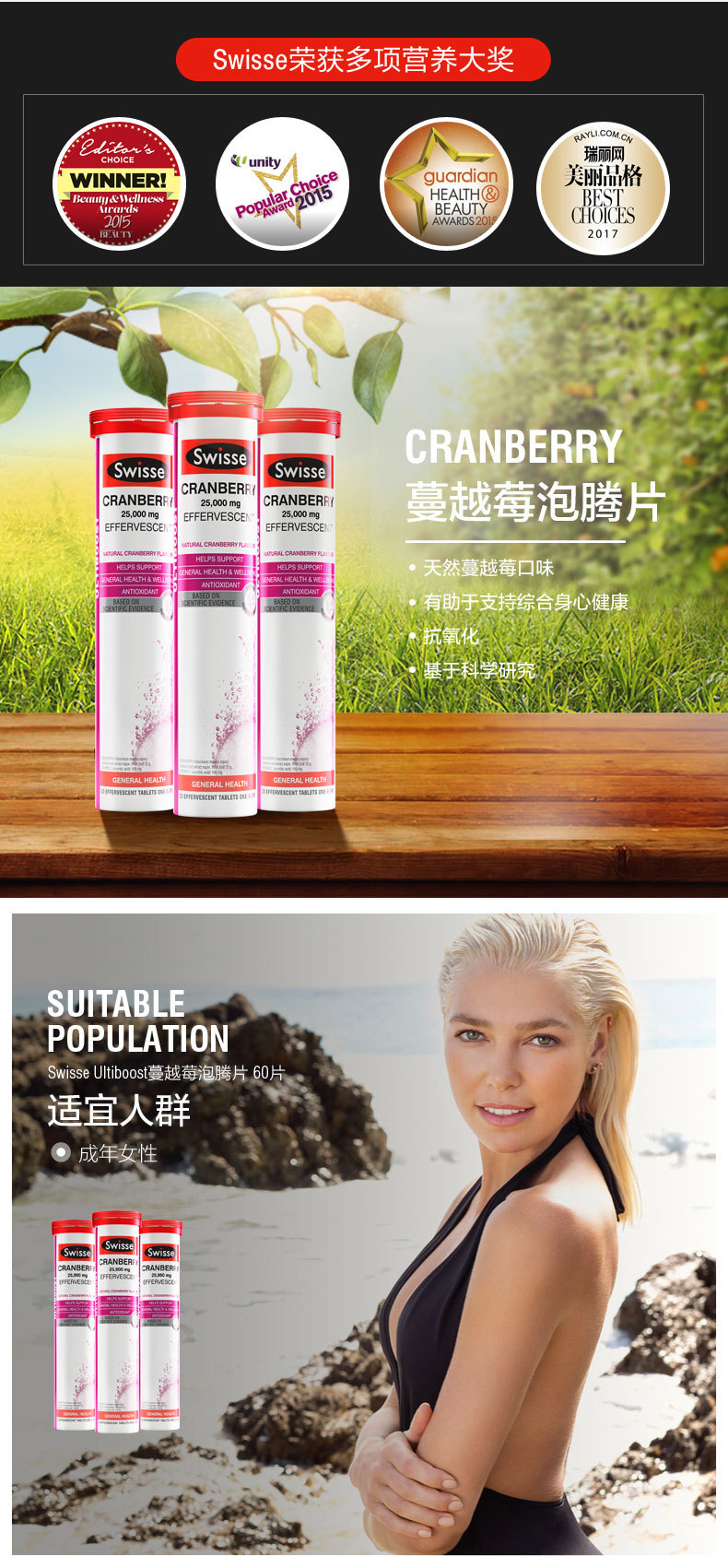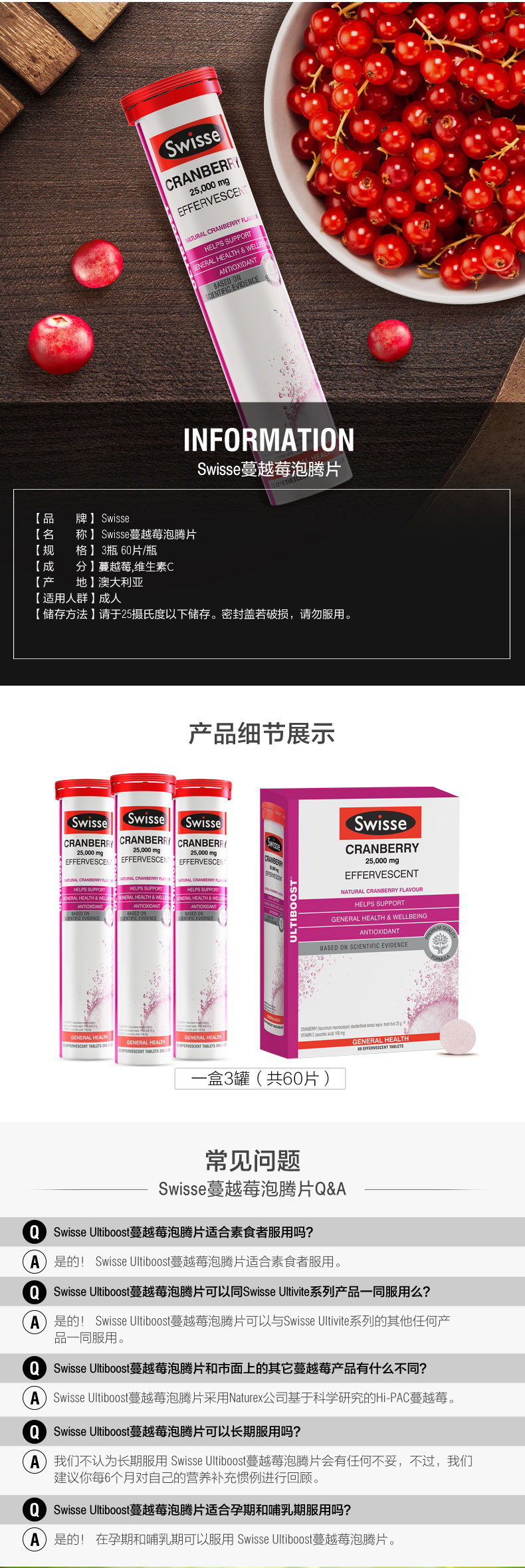 【澳洲仓】【三件及以上包邮 】Swisse 蔓越莓精华泡腾片60片 呵护女性泌尿健康美白抗氧化2021年7月