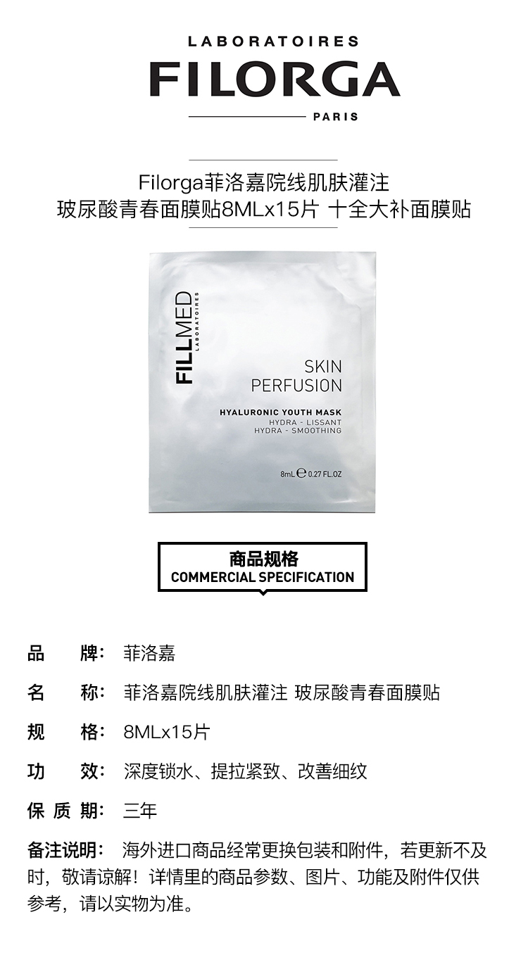 【欧洲仓】【法国直邮】Filorga菲洛嘉院线肌肤灌注 玻尿酸青春面膜贴8ML 十全大补面膜贴