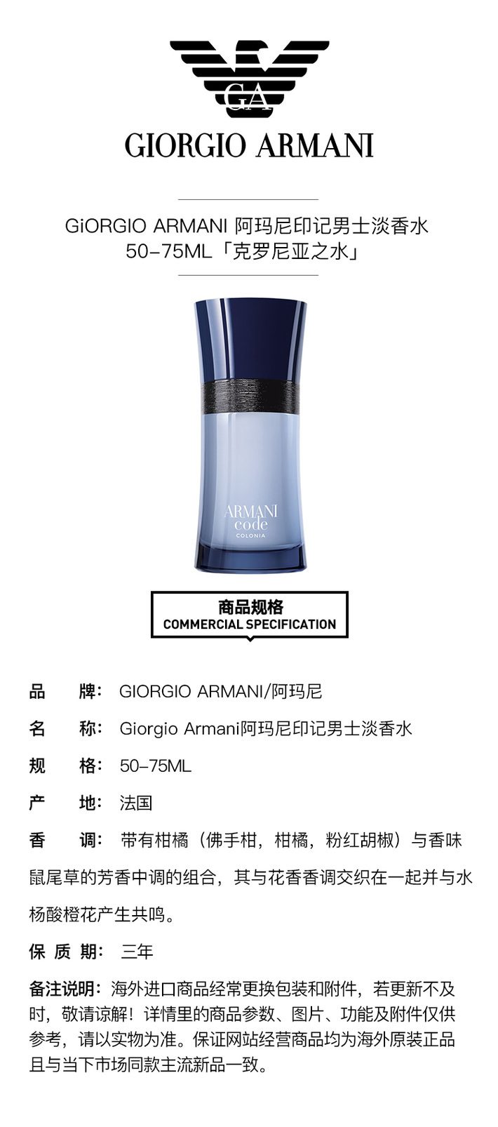 【欧洲仓】【法国直邮】Giorgio Armani阿玛尼印记男士淡香水125ML