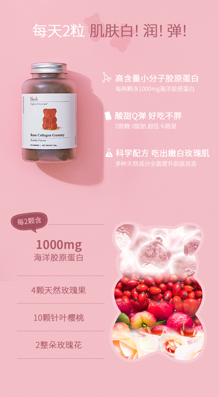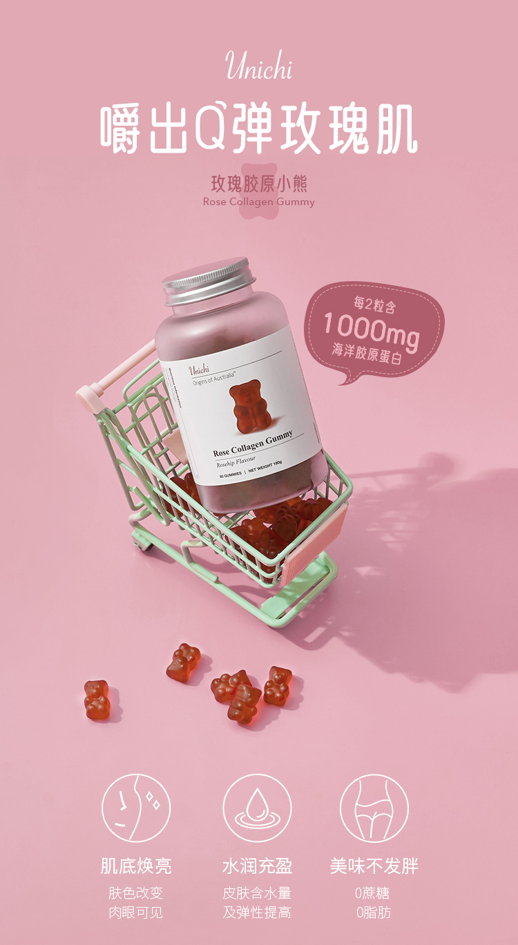 【澳洲仓】Unichi 玫瑰胶原蛋白小熊软糖礼盒(两瓶装) 美白抗衰老紧致细纹