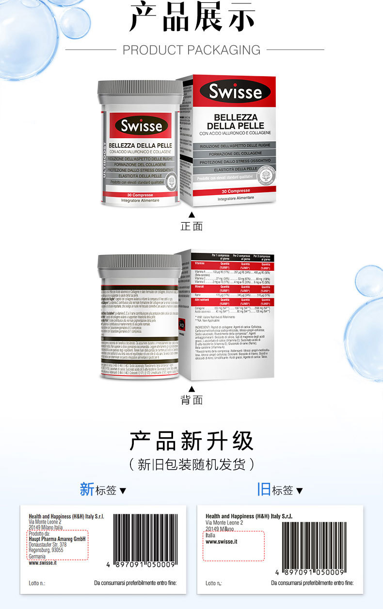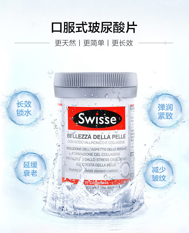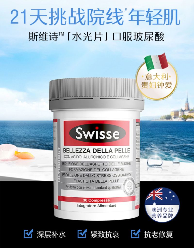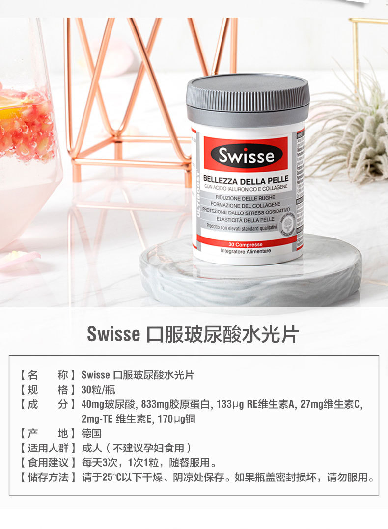 【澳洲仓】【三件及以上包邮 】Swisse 口服玻尿酸水光片意大利胶原蛋白水光片30粒 素颜嫩肤辅助抗糖【姐姐同款】2022/05