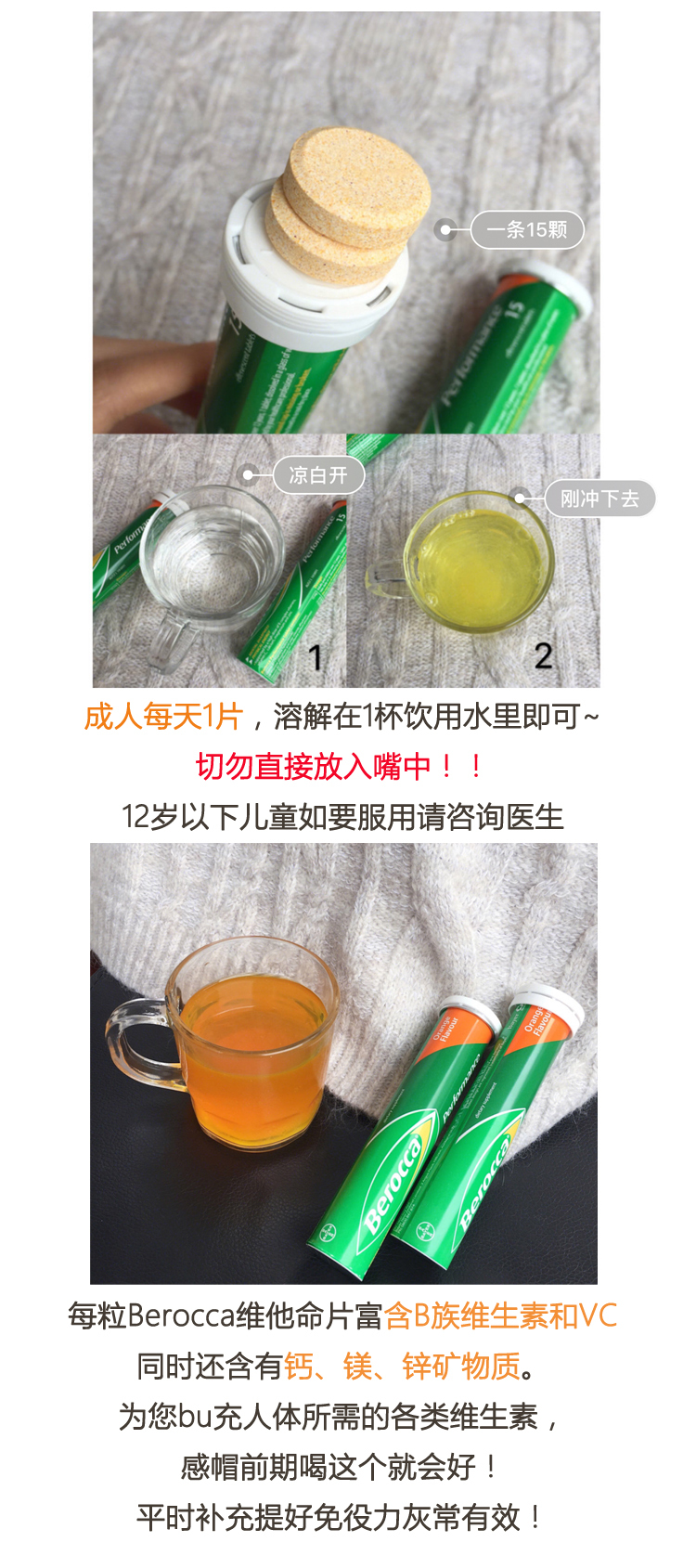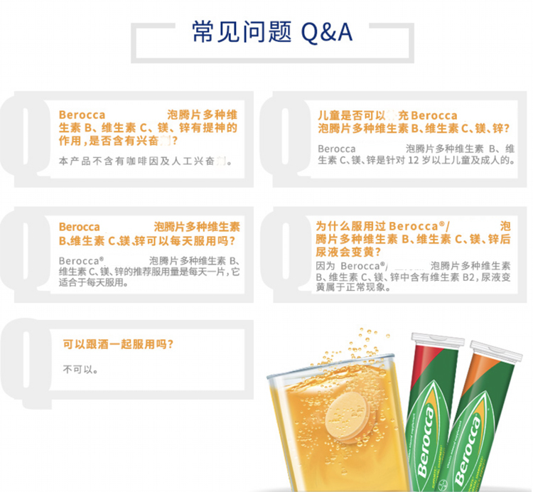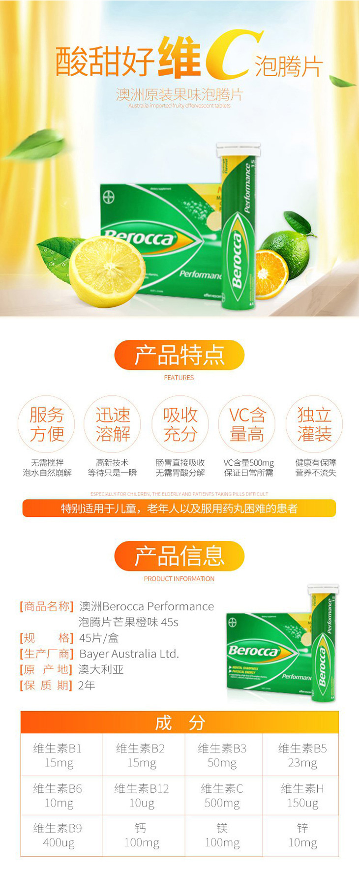 【澳洲仓】Bayer拜耳Berocca维生素C+B钙镁锌泡腾片VC 橙子味45片