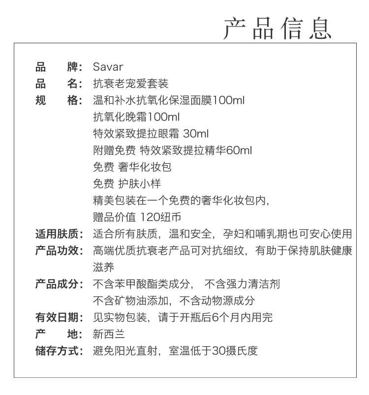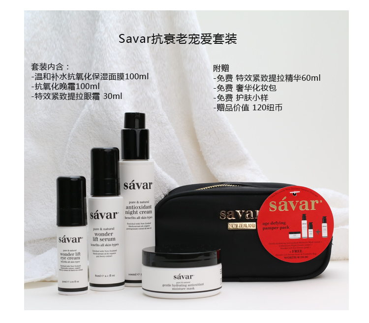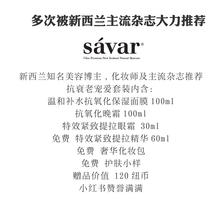 【新西兰仓】Savar 逆龄娇宠套装 4件套(面膜+晚霜+眼霜+精华)