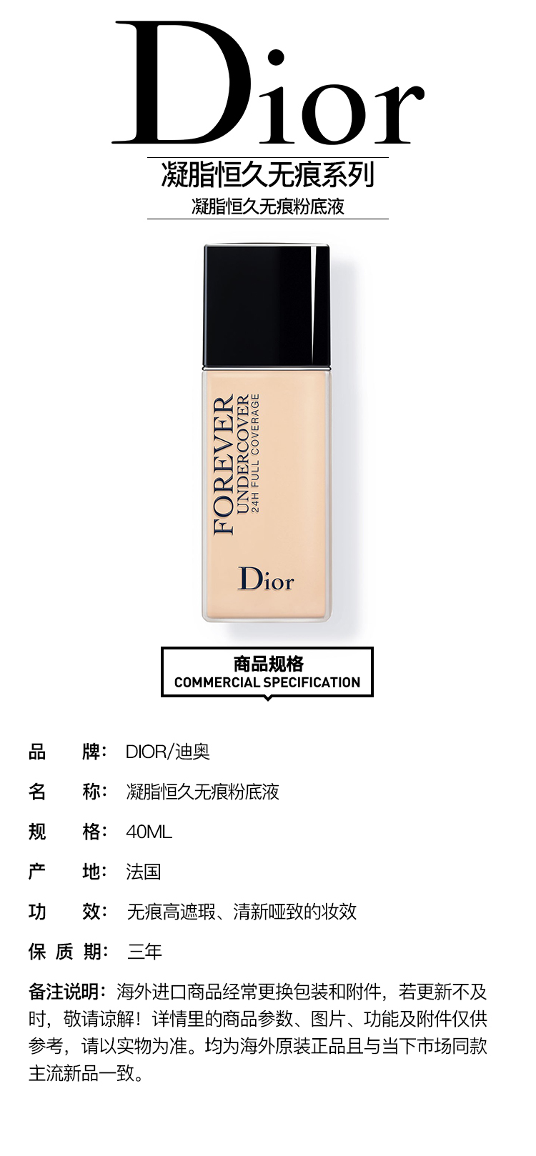 【欧洲仓】【法国直邮】Dior迪奥凝脂恒久无痕粉底液40ML