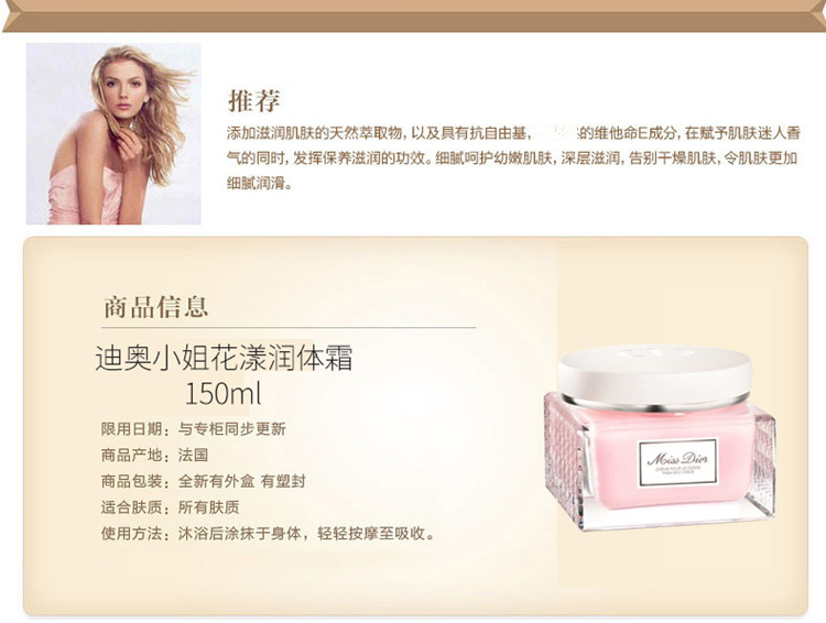 【欧洲仓】【法国直邮】Dior迪奥小姐花漾润体霜150ML