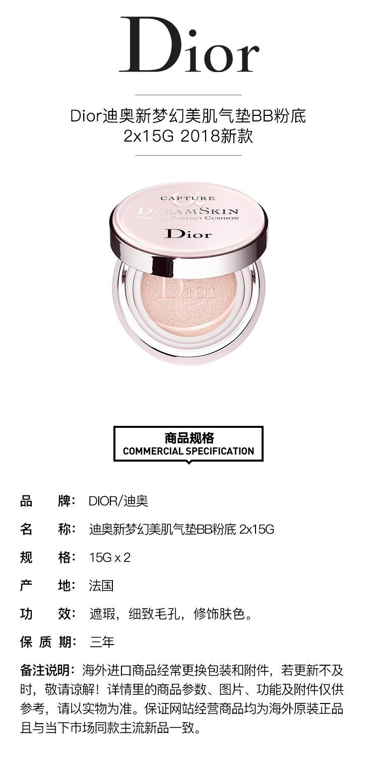 【欧洲仓】【法国直邮】Dior迪奥新梦幻美肌气垫BB粉底15G+15G替换装