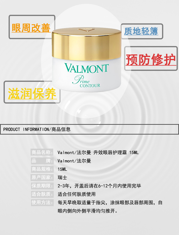【欧洲仓】【法国直邮】Valmont法尔曼升效眼唇护理霜15ML