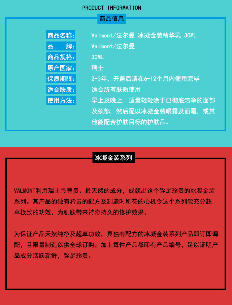【欧洲仓】【法国直邮】Valmont法尔曼冰凝金装精华乳30ML