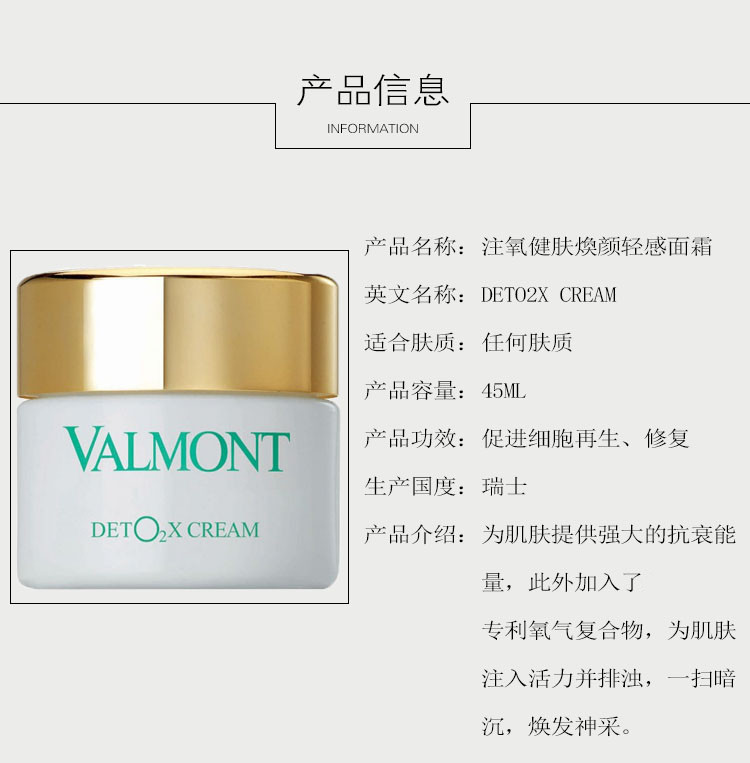 【欧洲仓】【法国直邮】Valmont法尔曼注氧健肤焕颜轻感面霜45ML