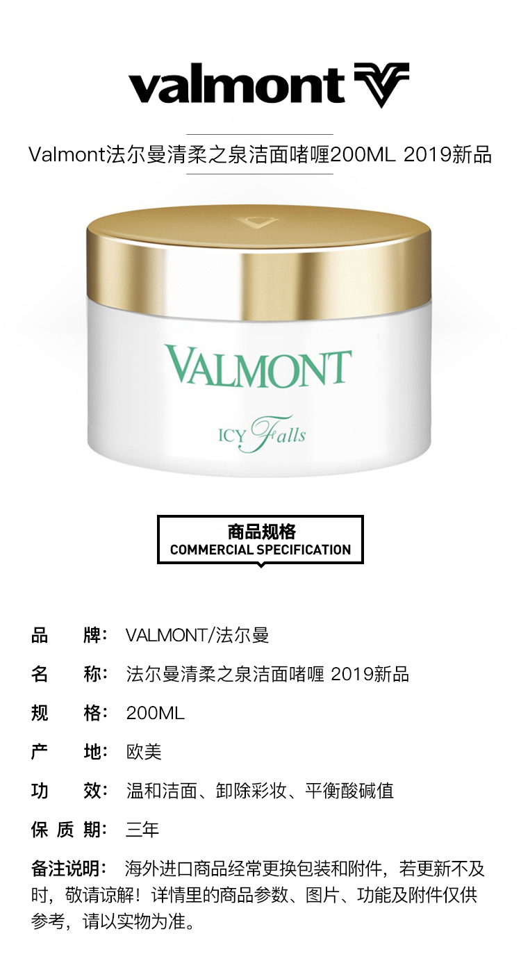 【欧洲仓】【法国直邮】Valmont法尔曼清柔之泉洁面啫喱200ML