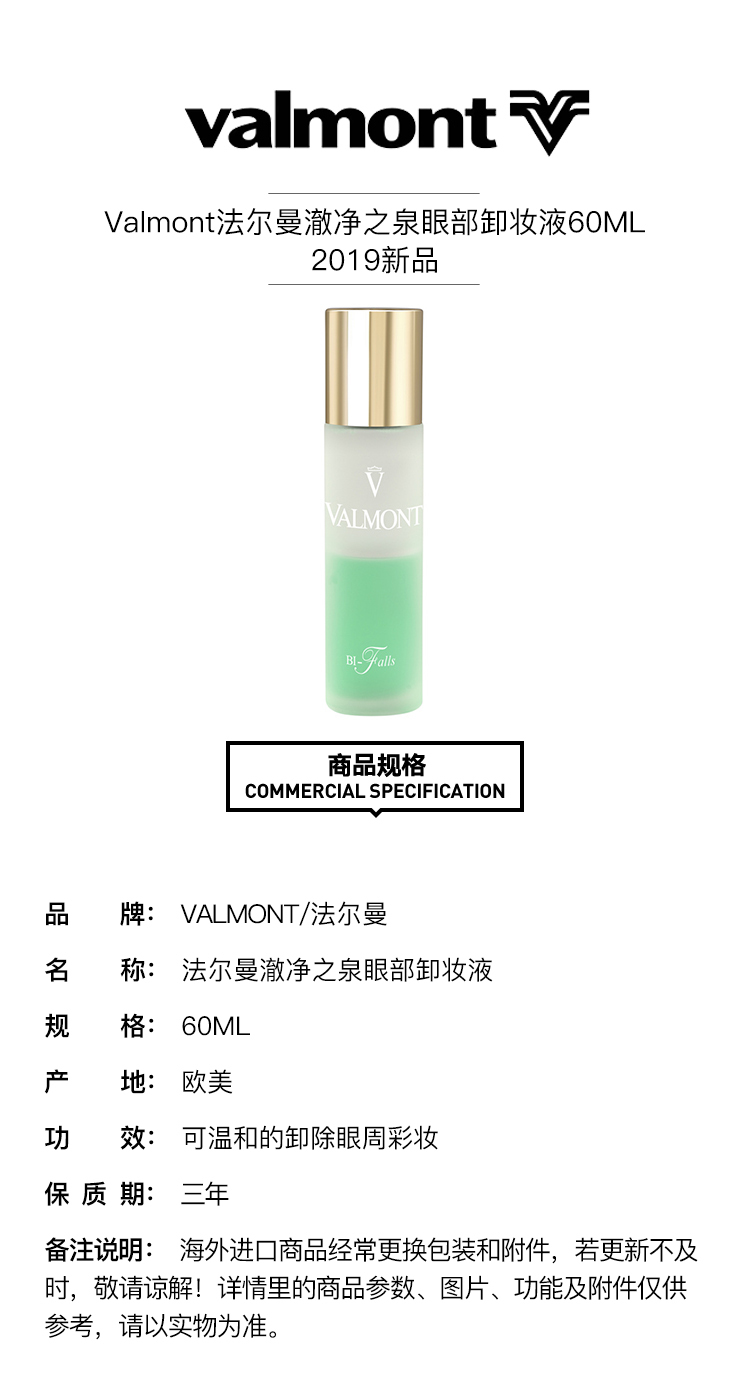 【欧洲仓】【法国直邮】Valmont法尔曼澈净之泉眼部卸妆液60ML