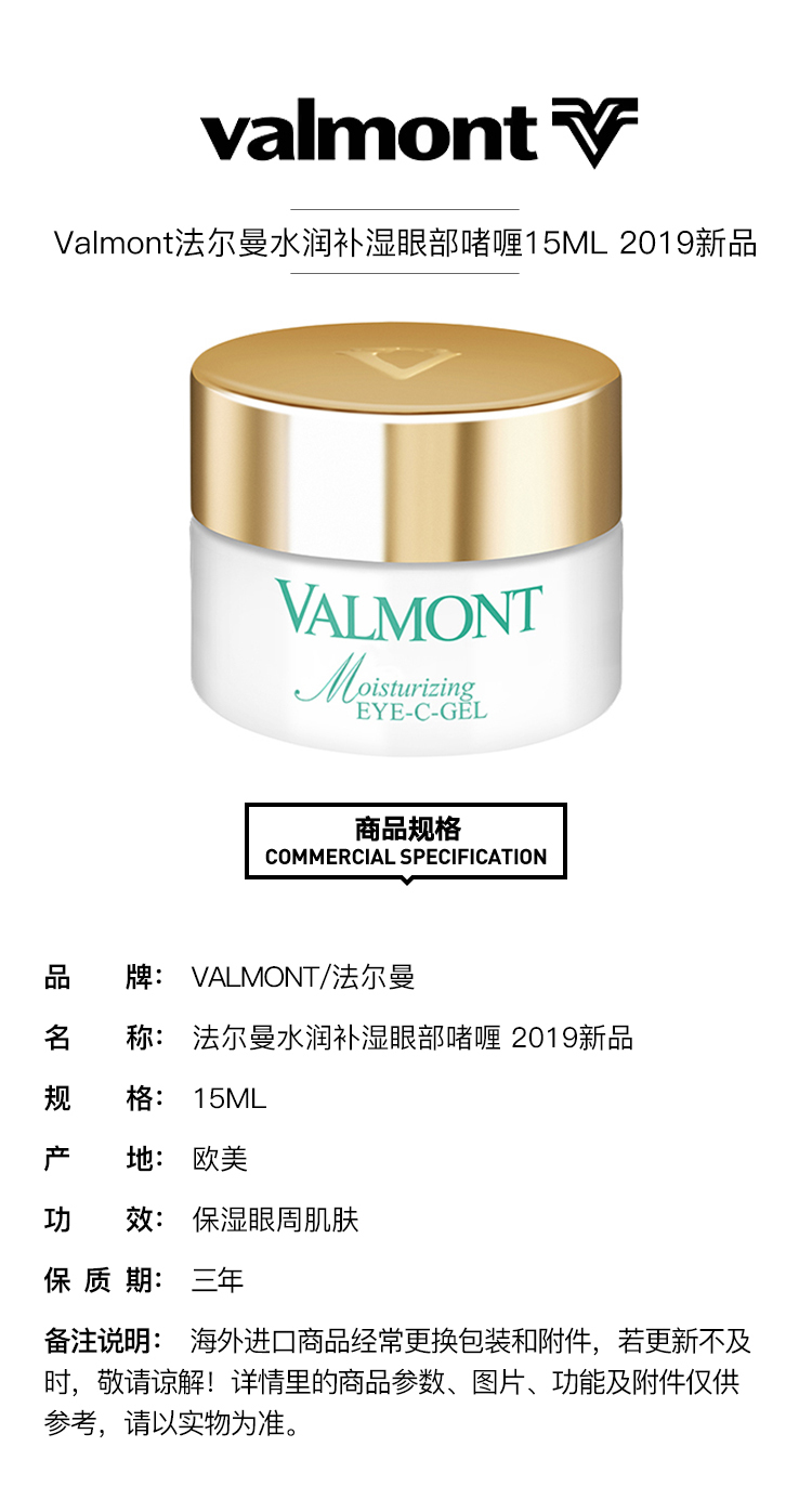 【欧洲仓】【法国直邮】Valmont法尔曼水润补湿眼部啫喱15ML