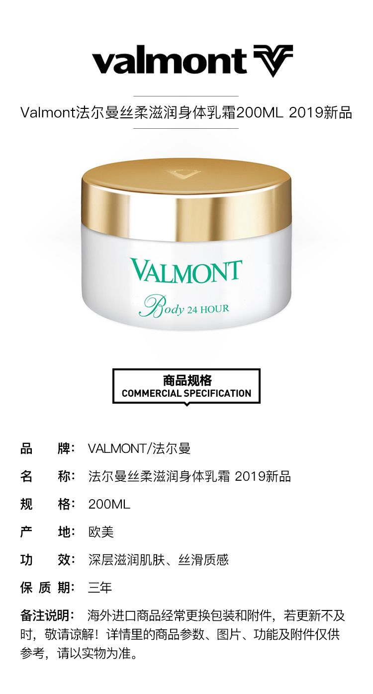 【欧洲仓】【法国直邮】Valmont法尔曼丝柔滋润身体乳霜200ML