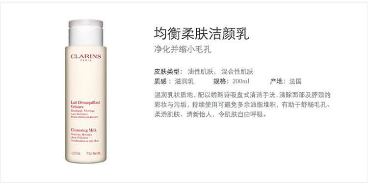 【欧洲仓】【法国直邮】Clarins娇韵诗「白吸盘」均衡柔肤洁颜乳200ML