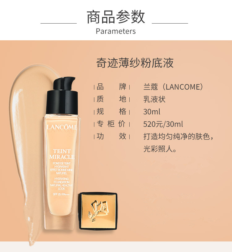 【欧洲仓】【法国直邮】Lancome兰蔻奇迹薄纱粉底液30ML